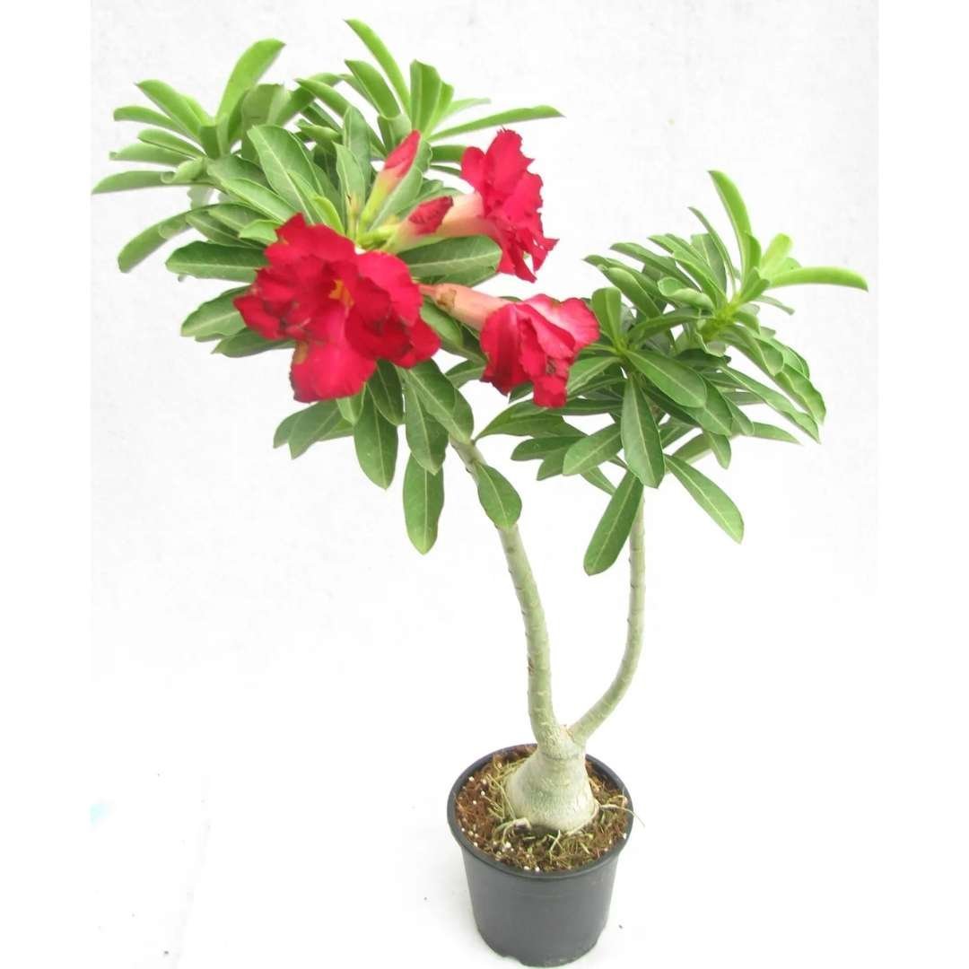 The Adenium, commonly known as the Desert Rose, is a striking ornamental plant admired for its thick, sculptural stem and vibrant trumpet-shaped flowers. Native to arid regions, the Adenium thrives in warm climates, making it a perfect choice for both indoor and outdoor spaces. Its unique, bonsai-like appearance, coupled with its vibrant blooms in shades of pink, red, and white, makes it a favorite among garden enthusiasts. Easy to care for and drought-tolerant, the Adenium brings a touch of the exotic to any space.